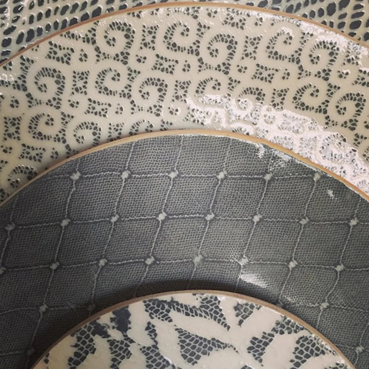 Set of 4 Assorted Floral Canape Plates