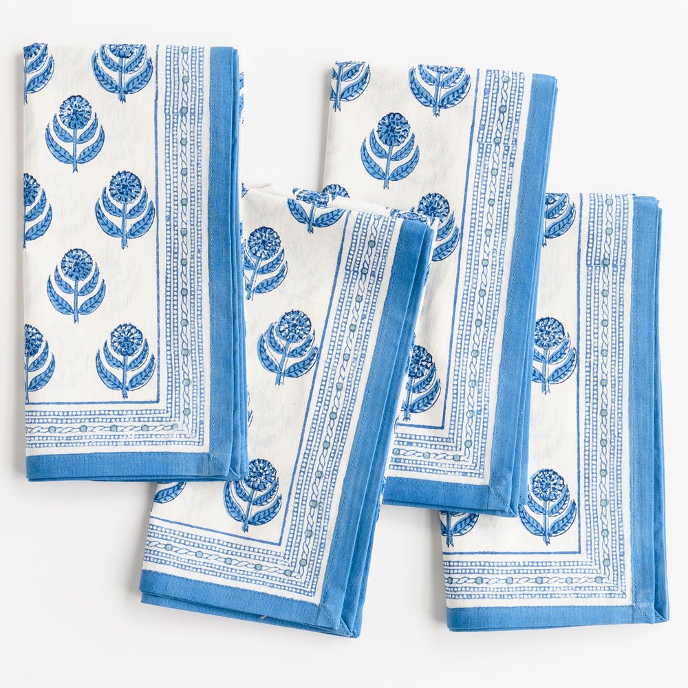 Blue Floral Block Print (Pinot) Napkin | Set of 4