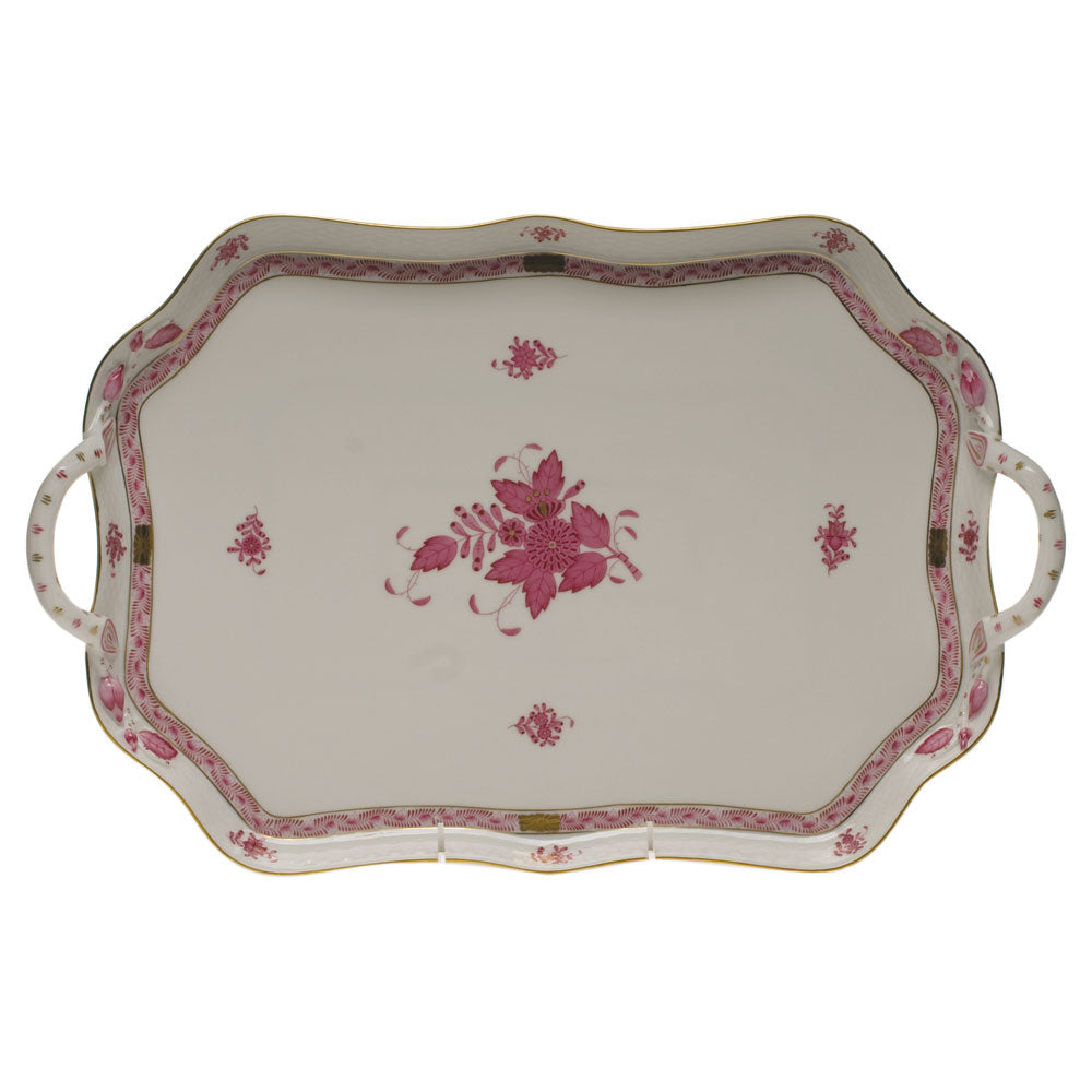 Chinese Bouquet Raspberry Rec Tray W/branch Handles 18"l
